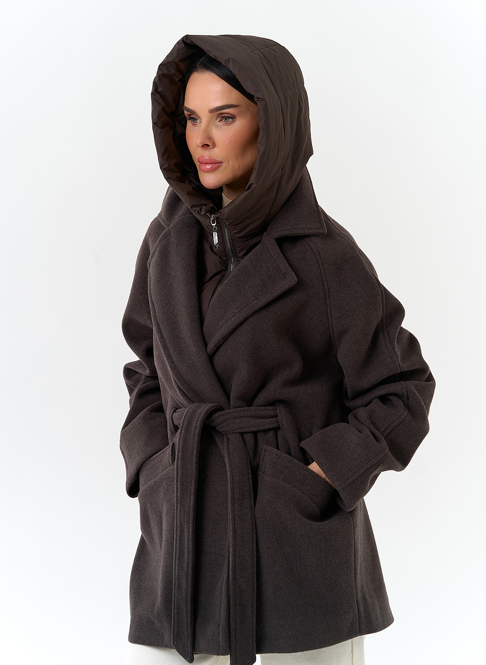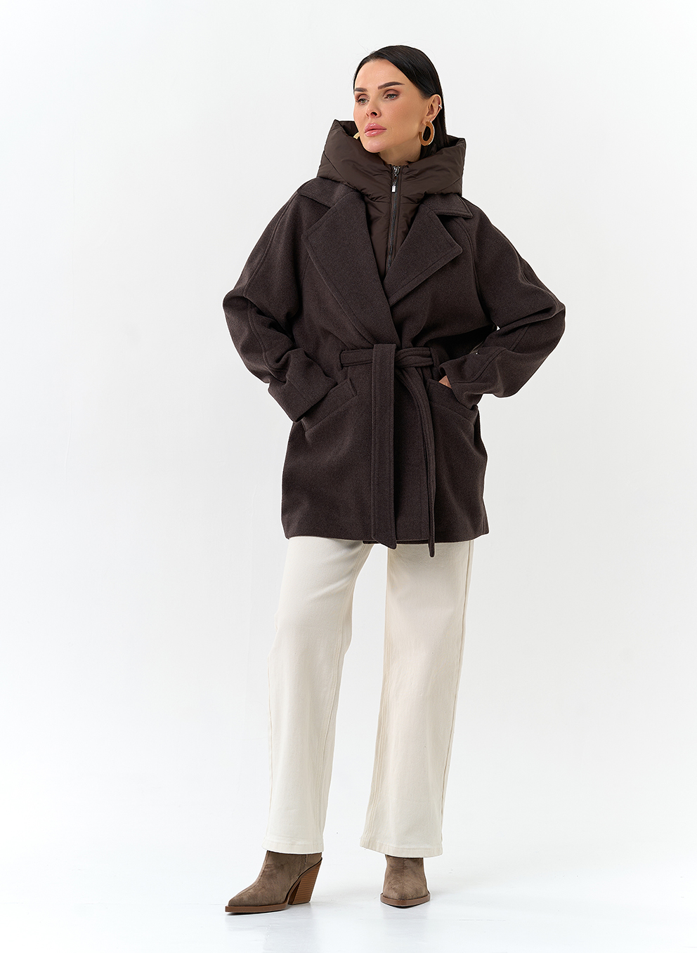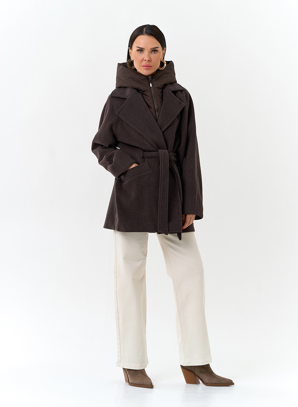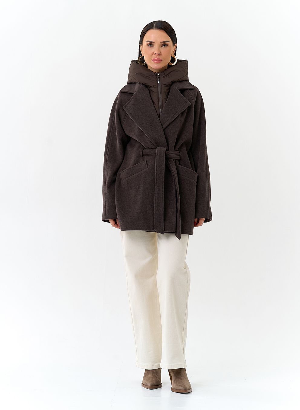 Крой воротника - съемный капюшон, английский воротник